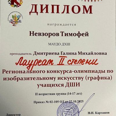 * Невзоров Тимофей - Лауреат II степени (преп. Дмитриева Г.М.);