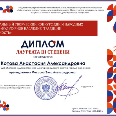Котова Анастасия - Лауреат III степени (преподаватель Массова Э.А.);