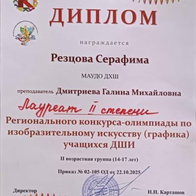* Резцова Серафима - Лауреат II степени (преп. Дмитриева Г.М.);