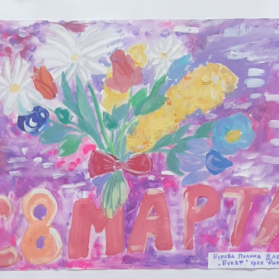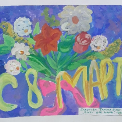 В Детской художественной школе, под руководством преподавателя Филипцовой Екатерины Сергеевны, проходит выставка детских творческих работ экспериментального отделения, посвященная празднованию Международного женского дня (8 Марта) "Букет для мамы" .