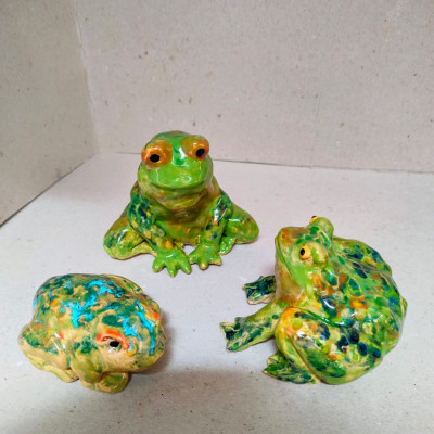 Все работы выполнены из глины, покрыты цветными эмалями и глазурями.