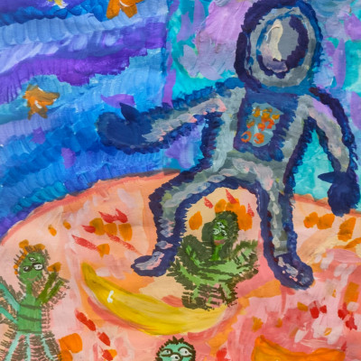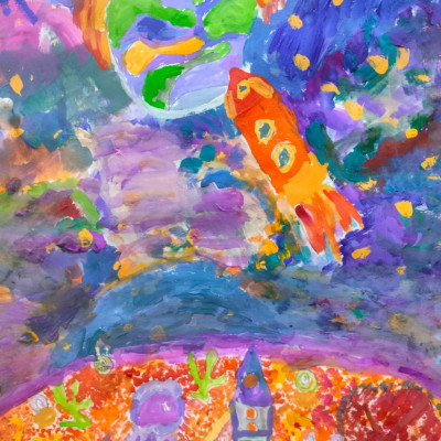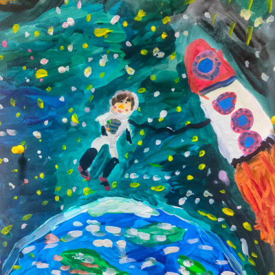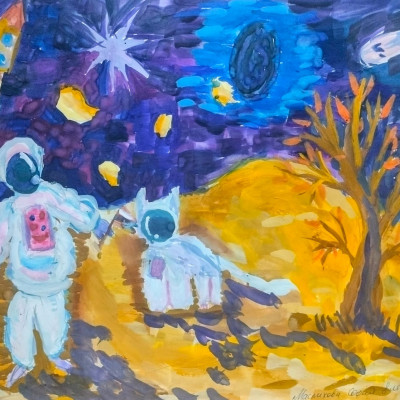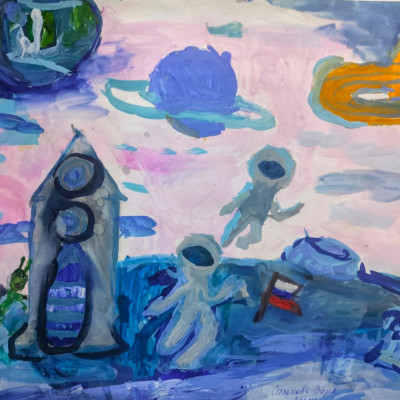 Представляем Вашему вниманию замечательные работы юных художников на тему космоса. На работах учащихся изображены: космическая техника и космические просторы галактики, планеты и звезды.