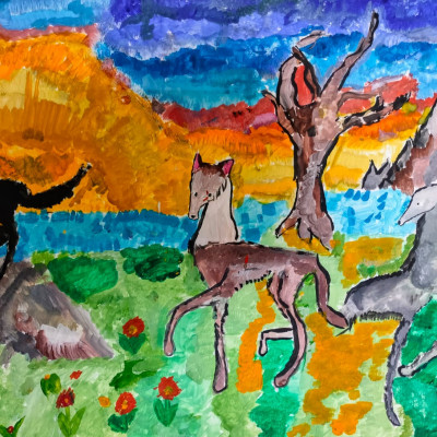 Выставка творческих работ обучающихся Подготовительного отделения Детской художественной школы "Приключения четвероногих", преподаватель Звонарев Павел Федорович.