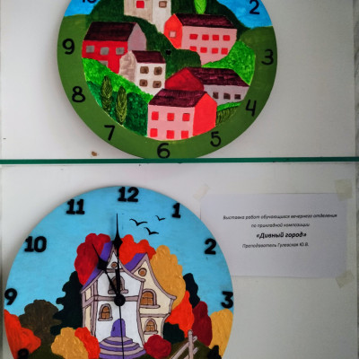 В Детской художественной школе проходит выставка творческих работ обучающихся вечернего отделения по прикладной композиции "Дивный город", преподаватель Гулевская Ю.В..